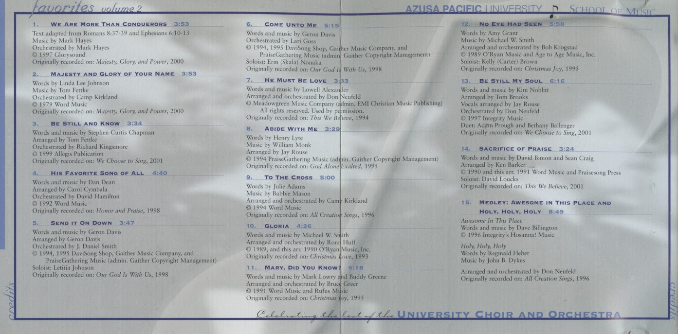 Azusa Pacific University Favorites Volume 2 MUSIC AUDIO CD christian choir songs