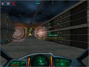 B-Hunter PC CD fly bounty hunter hovercraft thru towering buildings combat game!
