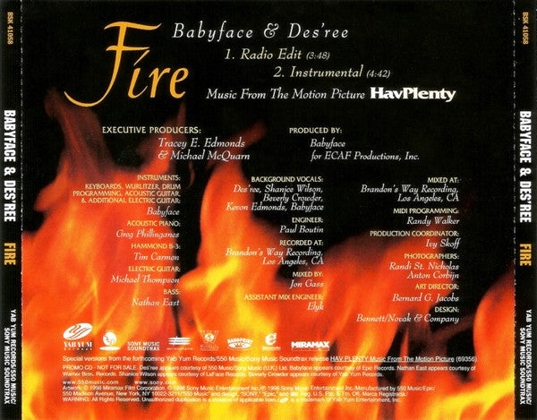Babyface & Des'ree: Fire PROMO MUSIC AUDIO CD funk soul + instrumental 1998 Sony