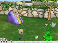 Initially, one baby is purchased with fifteen others on the disk available for adoption in the future. However, only three Babyz can be played with at once; the others are "sent to Grandma's." Upon setting up the game, you will see a backdrop of a backyard going through all the seasons. After a minute, you'll watch a stork advance toward your door with a bundle. He then rings the doorbell and you will see the installation screens for Babyz, Viavoice, and DirectX. Once the game is launched, you enter the "Babyz Adoption Serial Number" (each has his or her own) found on the front of the CD case. The Babyz then appears in the playroom background and you can name him or her.
