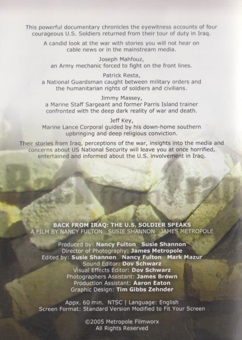 Back From Iraq: The U.S. Soldier Speaks DVD VIDEO DOCUMENTARY war eyewitness US