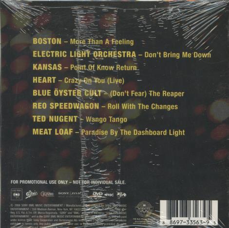 DVD of rock legends with the tracks: Boston- More than a Feeling Electric Light Orchestra - Don't Bring me down Kansas - Point of know Return Heart - Crazy on you (live) Blue Oyster Cult - (Don't Fear) The Reaper Reo Speedwagon - Roll with the changes Ted Nugent - Wango Tango Meat Loaf- Paradide by the Dashboard Light