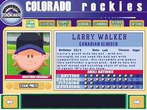 Part of the Humongous Sports series, Backyard Baseball 2001 is a customizable sports title featuring the Backyard Kids, as well a few smaller versions of Major League pros. Children can select from 30 Major League Baseball teams and compile their rosters any way they choose. Kid versions of Randy Johnson, Ivan Rodriguez, Mo Vaughn, and Cal Ripken, Jr. are just a few of the choices available to comprise a team. Players are then given the option to play a single game or start a series.