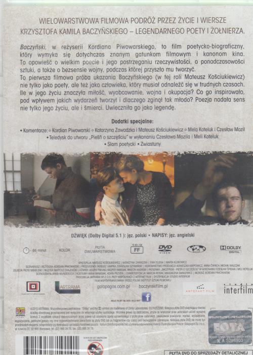 Baczyński, w reżyserii Kordiana Piwowarskiego, to film poetycko-biograficzny, który wymyka się dotychczas znanym gatunkom filmowym i kanonom kina. To opowieść o wielkim poecie i jego postrzeganiu rzeczywistości, o ponadczasowości sztuki, a także o bezsense wojny, podczas której przyszło mu tworzyć.