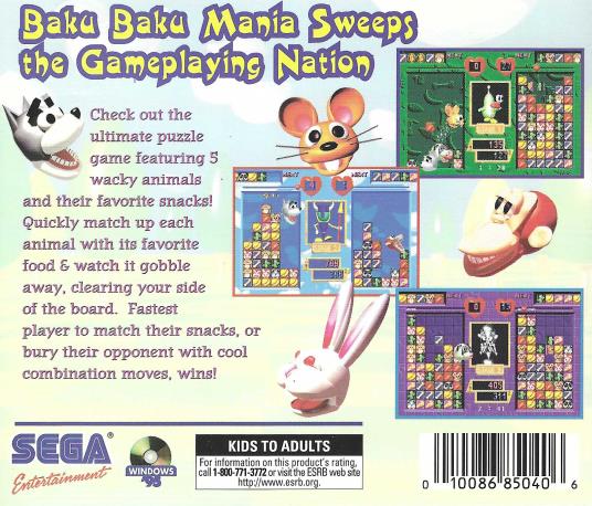 Sega's Baku Baku PC CD feed animals greatest zookeeper in the world puzzle game