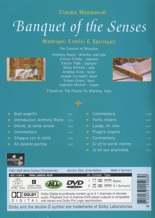 Banquet Of The Senses DVD VIDEO CONCERT Claudio Monteverdi Italy classical 2002