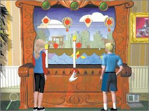 You'll explore the entire resort, search for clues with tools such as a magnifying glass, and uncover hidden areas. The interface in The Vacation Mystery is point-and-click and utilizes a "smart" cursor that changes to various icons for different situations as you explore your onscreen locations. Activities include racing a four-wheeler over the dunes, pursuing suspects in a boat chase, and even fighting the winds and clouds for a bird's eye view of the resort from your hang glider!