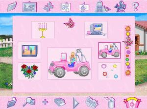 Unlike books and television shows, where you have no input into the storyline direction or character makeup, Barbie Storymaker lets you bring Barbie stories to life. You choose the setting, the props, and the characters. Have your story play out in the mall, at the beach, in the ballet studio, or plan a storyline in and around the Barbie Dream House. As the author and creator of your interactive story, you can name (many of) your characters and direct their movements. Choose from Barbie dolls, animals, friends, and family. Have the characters' dialogue appear as onscreen text or record your own voice and add sound effects. Once you've constructed your tale, link the scenes together and watch the Barbie stories play out. In addition to making stories for your computer screen, you can design real coloring book pages to print on your ink jet or laser printer.