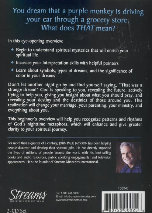 Discover how spiritual mysteries can enrich your life. A pioneer of biblical dream interpretation, John Paul Jackson guides you through the supernatural realm that coexists and interacts with us. This eye-opening beginner's overview will help you discover patterns and rhythms of God's nighttime metaphor that will enhance your spiritual journey. Explore the keys to remembering your dreams!