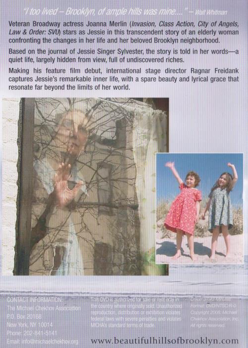 Veteran Broadway actress Joanna Merlin (Invasion, Class Action, City of Angels, Law & Order: SVU) stars as Jessie in this transcendent story of an elderly woman confronting the changes in her life and her beloved Brooklyn neighborhood. Based on the journal of Jessie Singer Sylvester, the story is told in her words—a quiet life, largely hidden from view, full of undiscovered riches. Making his feature film debut, international stage director Ragnar Freidank captures Jessie's remarkable inner life, with a spare beauty and lyrical grace that resonate far beyond the limits of her world.