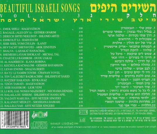 Beautiful Israeli Songs Vol. 3 MUSIC AUDIO CD classic folk hebrew 22 tracks 1994