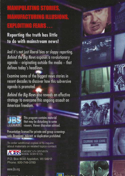 MANIPULATING STORIES, ILLUSION Reporting the truth has little to do with mainstream news! And its not just liberal bias or sloppy reporting. Behind the'Big News exposes a revolutionary agenda -- originating outside the media -- that 571 t defines today's headlines. v 4 Examine some of the biggest news stories in recent decades to discover how this subversive agenda is promoted. Behind the Big News also reveals an effective strategy to overcome this ongoing assault on American freedom. This program contains material that may be disturbing to some viewers. Viewer discretion advised.