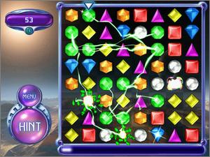 Bejeweled 2 continues PopCap's gem-matching game with four play modes, ten sci-fi backdrops, and new strategies to master. Once again players are challenged to create matches of three or more by swapping adjacent gems horizontally or vertically. Players advance levels and build their score until it is no longer possible to create a match. Bejeweled 2 introduces the ability to create two new gem types. Matching four produces a "power gem" that detonates if matched with similar gems. Creating five-gem matches forms a "hyper cube," which clears the entire board of the gem type it touches during a swap.