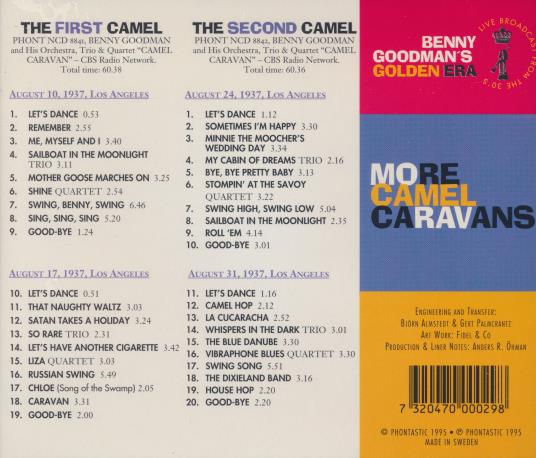 Live broadcast from the CBS "Camel Caravan" radio network. Engineering and transfer: Björn Almstedt & Gert Palmcrantz. Art work: Fidel & Co. Production & liner notes: Anders R. Öhman. Made in Sweden.