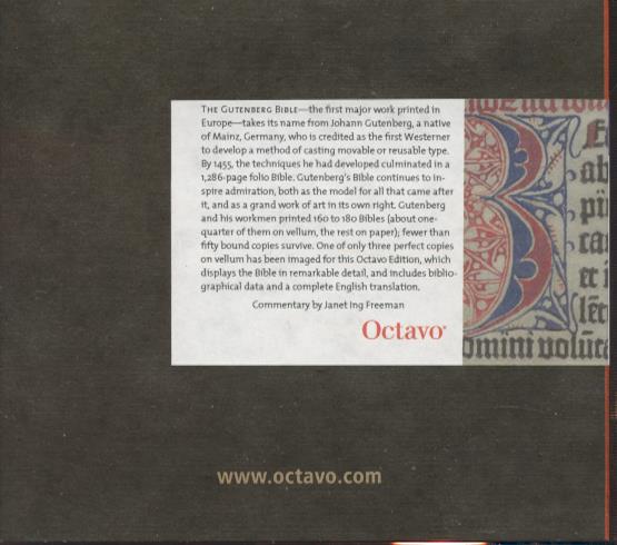 One of only three perfect copies on vellum has been imaged for this Octavo Edition, which displays the Bible in remarkable detail and includes bibliographical data and a complete English translation.