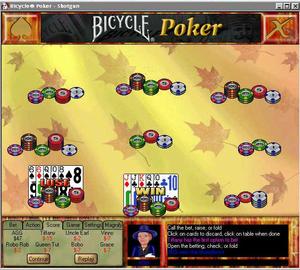Bicycle Poker offers multiplayer action via the Internet at the Microsoft Gaming Network or can be played solo against computer-controlled opponents.