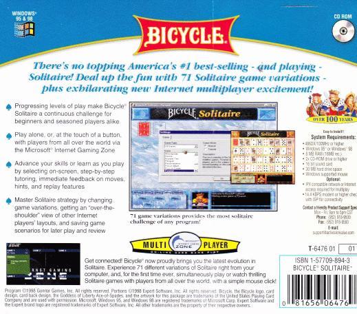 Bicycle Solitaire 1998 PC CD sort by number suit order single player card game!