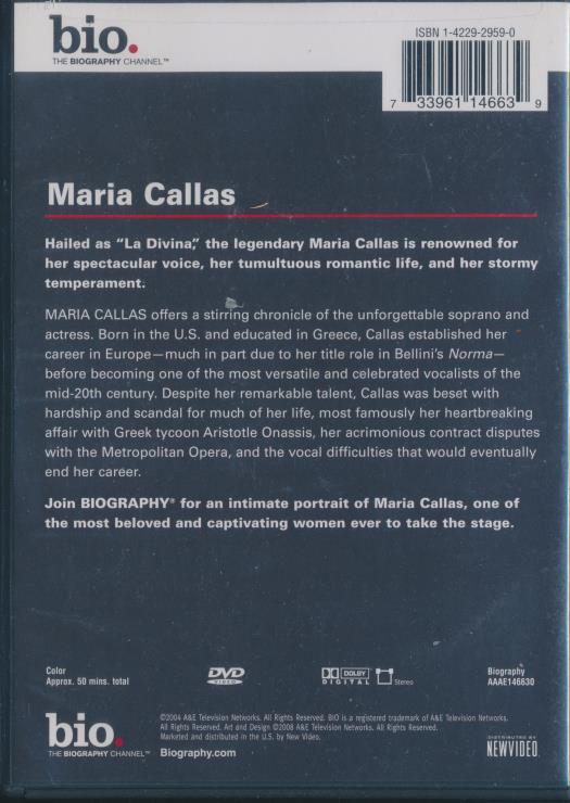 Bio Presents Maria Callas DVD VIDEO DOCUMENTARY legendary soprano biography NEW