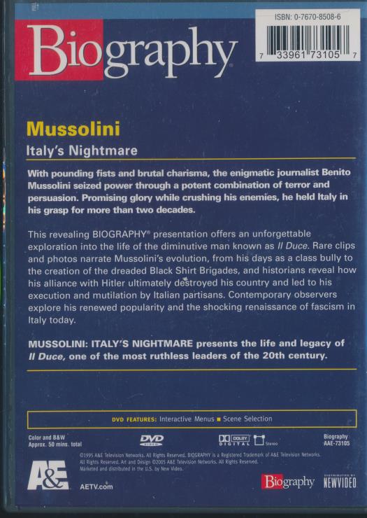 Biography Mussolini: Italy's Nightmare DVD VIDEO DOCUMENTARY history 1995 SEALED