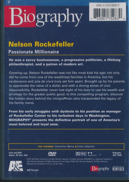 Biography: Nelson Rockefeller: Passionate Millionaire DVD VIDEO DOCUMENTARY NEW