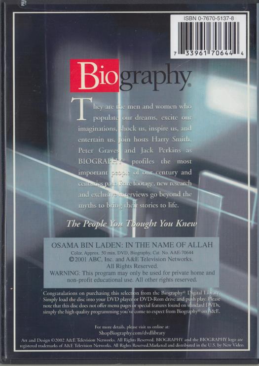 Biography: Osama Bin Laden: In The Name Of Allah DVD VIDEO DOCUMENTARY SEALED
