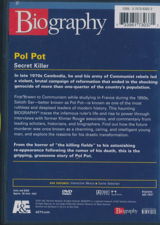Biography: Pol Pot: Secret Killer DVD VIDEO DOCUMENTARY cambodian genocide NEW