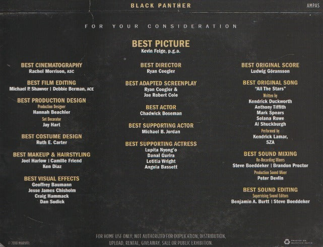 Black Panther For Your Consideration DVD VIDEO MOVIE FYC Chadwick Boseman Marvel