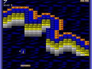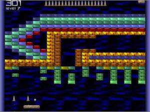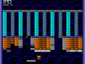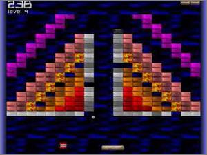 As a rule, all blue power-ups released by exploding bricks are helpful, but players must avoid the red-colored items, which make gameplay more difficult. For example, blue power-ups can increase the width of the paddle or add extra points to your score, while red items can make the entire block of bricks start descending down the screen, reduce paddle size, or end the level.