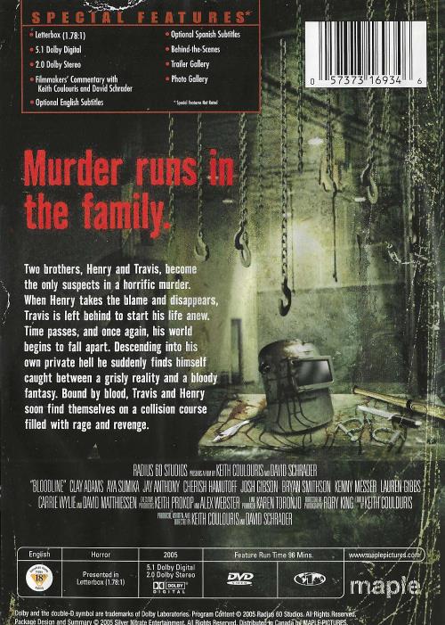 Bloodline DVD VIDEO MOVIE horrific murder horror bloody gore 2005 Maple Pictures