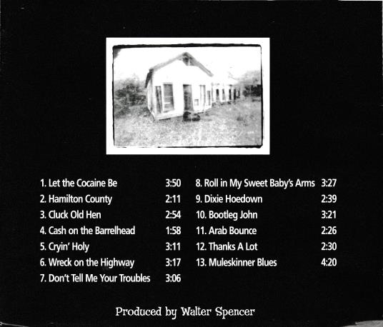 1. Let the Cocaine Be 2. Hamilton County 3. Cluck Old Hen 4. Cash on the Barrelhead 5. Cryin' Holy 6. Wreck on the Highway 7. Don't Tell Me Your Troubles 3:50 2:11 2:54 1:58 3:11 3:17 3:06 8. Roll in My Sweet Baby's Arms 3:27 9. Dixie Hoedown 2:39 10. Boot John 3:21 11. Arab Bounce 2:26 12. Thanks A Lot 2:30 13. Muleskinner Blues 4:20 Produced by Walter Spencer