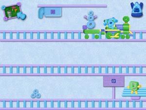Shovel and Pail will invite you to play a game of Mother May I?, which involves using simple mathematical operations to count along a number line. Your job is to help Blue reach number 10 before her friend. At Mr. Salt and Mrs. Pepper's Snack Stand, you must sort snacks, such as fruit and vegetables, according to their attributes. Tink's Train Ride has you clicking on bins to add or take away building supplies from a moving train. Baby Bear's Card Game involves matching cards that are of the same color or have the same number of shapes.