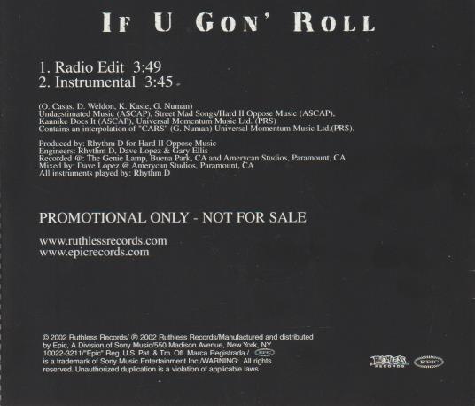 Blunts LLA: If U Gon' Roll PROMO w/ Artwork MUSIC AUDIO CD Edit Instrumental 2tk