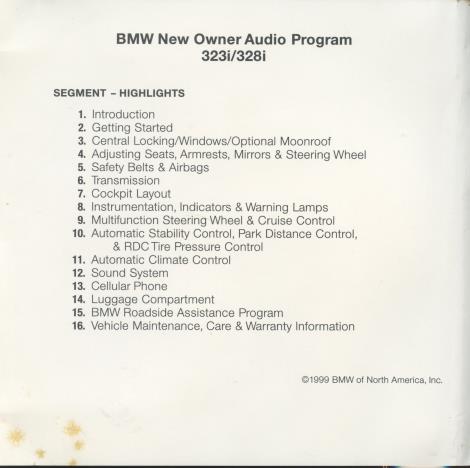 BMW: New Owner Audio Program: 323i/328i CD automobile guide instructional 1999