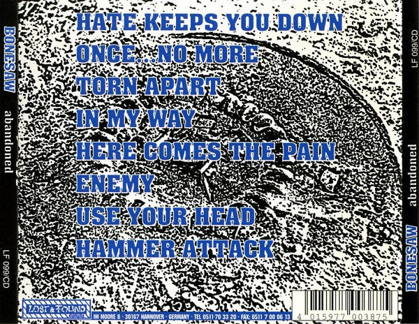 Bonesaw: Abandoned MUSIC AUDIO CD German hardcore rock band! 1994 Lost And Found