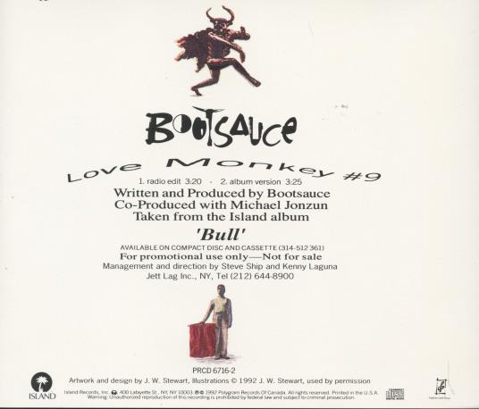 Bootsauce: Love Monkey #9 PROMO MUSIC AUDIO CD single funk metal rock band 1992
