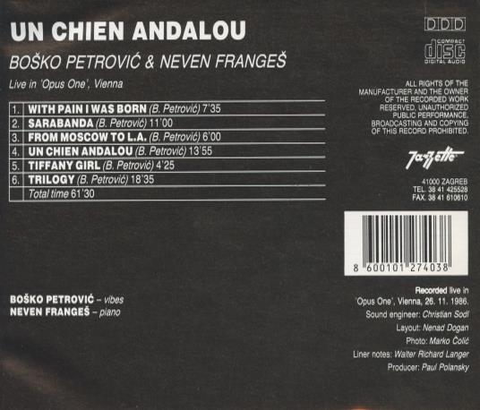 Boško Petrović & Neven Frangeš Duo: Un Chien Andalou: Live In Opus One Vienna