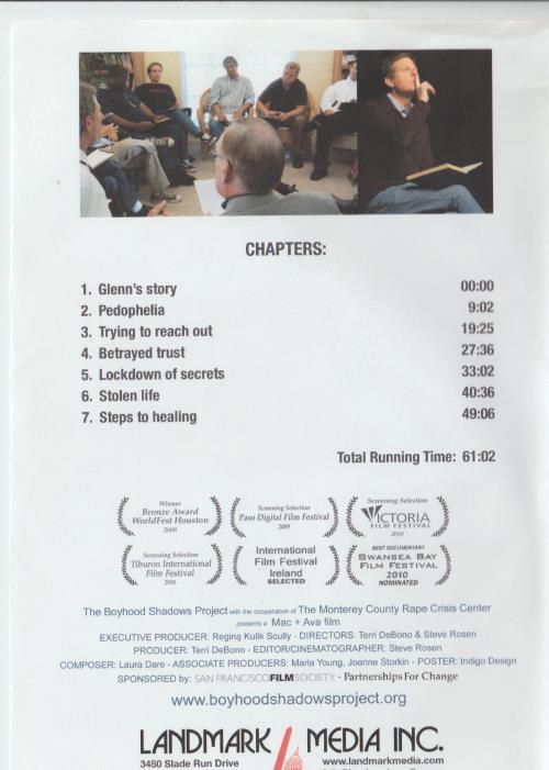 CHAPTERS: 1. Glenn's story 2. Pedophelia 3. Trying to reach out 4. Betrayed trust 5. Lockdown of secrets 6. Stolen life 7. Steps to healing