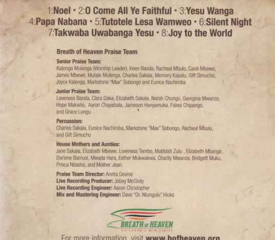 Breath of Heaven Praise Team is known for their uplifting gospel music and powerful worship leader performances, engaging audiences with heartfelt spiritual tunes. Some songs are in Bemba, Nyanja, Congoese languages!