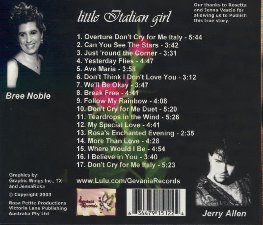 Bree Noble & Jerry Allen: Little Italian Girl MUSIC AUDIO CD broadway opera 2003