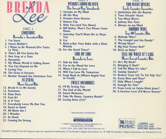 Brenda Lee: The Legendary Brenda Lee 3-Disc MUSIC AUDIO CD oldies compilation!