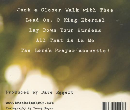 Redeeming the Time is worship music that is both soulful and melodic from award-winning vocalist and songwriter Brooke Lambkin.Tracklist