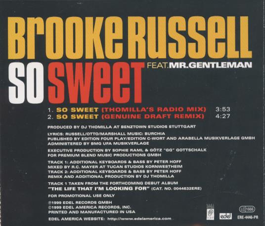 Brooke Russell: So Sweet PROMO MUSIC AUDIO CD dance house club mixes! 1999 Edel