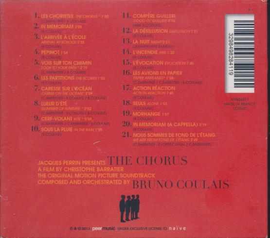 Jacques Perrin presents THE CHORUS. A film by Christophe Barratier. The original motion picture soundtrack composed and orchestrated by Bruno Coulais. © & ℗ 2013 peer music under exclusive license to naîve. Made in France. Catalog: NV828411 / LCD540.
