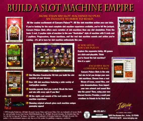 Caesars Palace Slots- Offers more than 100 slot machines to play, with an infinite number to build. Progressive theme machines, and the real slot machine sounds. Slot machine constructor kit lets you build the slot machine of your dreams.