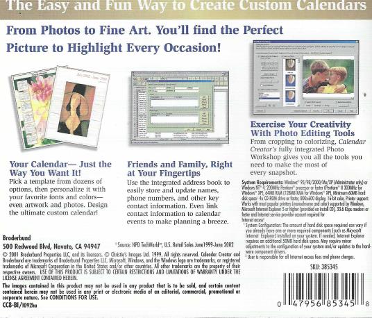 Plus, you can add even more of a personal touch with the ability to import and edit your own photos. And with high-powered features like advanced scheduling, event reminders, drag-and-drop editing, and an integrated address book, Calendar Creator 8 can organize even the most complex schedules (and look good doing it)! From fun family calendars to serious schedule tracking, Calendar Creator 8 has you covered!