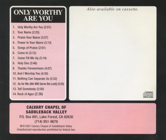 Calvary Chapel of Saddleback Valley: Only Worthy Are You MUSIC CD 90s worship!