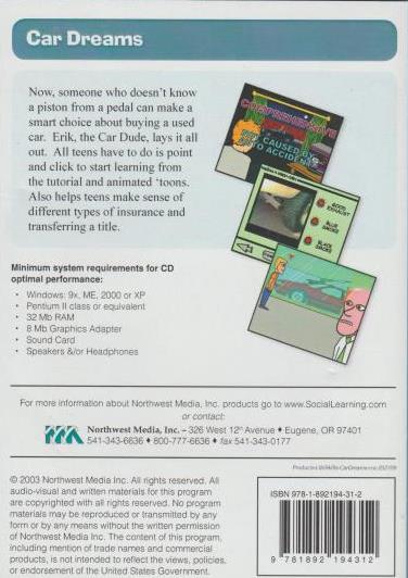 Car Dreams Now, someone who doesn't know a piston from a pedal can make a smart choice about buying a used car. Erik, the Car Dude, lays it all out. All teens have to do is point and click to start learning from the tutorial and animated `toons. Also helps teens make sense of different types of insurance and transferring a title.
