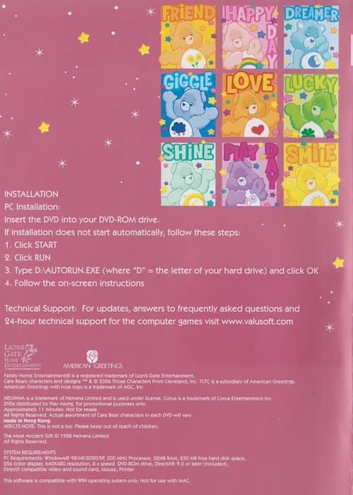 Care Bears: The Most Ancient Gift / Let's Have A Ball! DVD VIDEO PC CD kids game