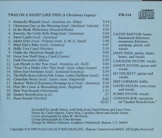 Cathy Barton & Dave Para: 'Twas On A Night Like This MUSIC AUDIO CD Christmas!