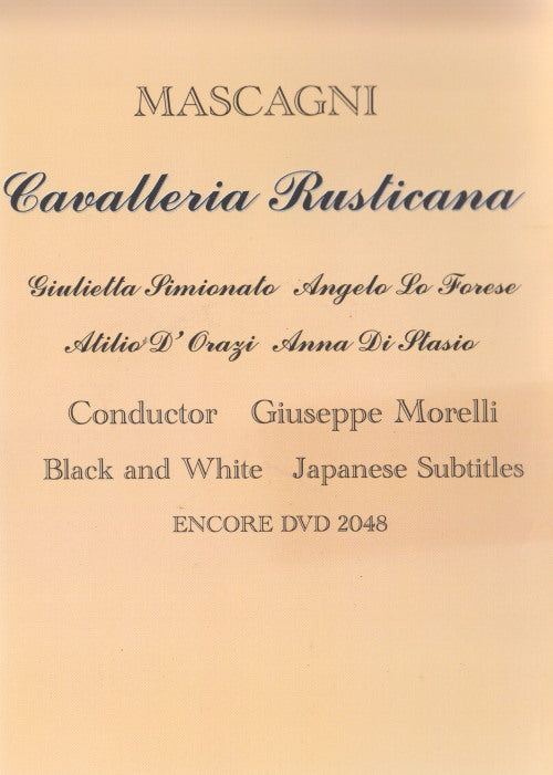 This 1961 Tokyo performance captures the evening’s live energy with a distinguished cast led by the celebrated mezzo Giulietta Simionato and supported by Angelo Lo Forese, Atilio D'Orazi and Anna Di Stasio under Giuseppe Morelli’s baton. Presented in black and white with Japanese subtitles, the recording offers historical value as well as musical immediacy — the kind of archival document prized by collectors and lovers of verismo alike. Encore DVD 2048 preserves this performance for viewers who appreciate period stagecraft, authentic vocal style, and the dramatic intensity that made Mascagni’s work an enduring pillar of the operatic canon.